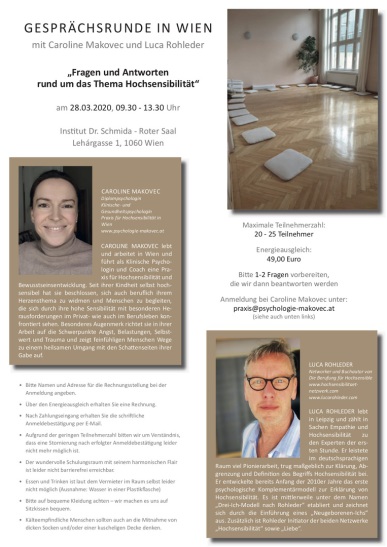 Gesprächsrunde mit Luca Rohleder in Wien am 28.03.2020 - Veranstaltung musste coronabedingt leider abgesagt werden